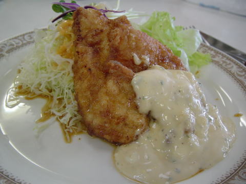 | 第3回 高鍋店(高鍋町)/03.11.. 【赤鳥型】¥900 ![]() 高鍋町の中心地、しんきん通りに所在する。 ホテルの1階ということもあって、目印の三角屋根がなく、極めてシンプルな外観である。が、内装はやはり「おぐら」感バリバリ。壁面に「(C)ディズニーではないと推察されるぱちもんミッキー、のようなもの」が沢山並んでいるのを発見。実に70年代テイストに溢れている。 ここのチキバンの特徴は何より肉が違う、のだね。数ある「おぐらチェーン」のなかで唯一、「赤鳥」の肉を使用しているのだ。肉がやわらかくとてもジューシー。噛んだ途端にあふれでる肉汁とタルタルソースの甘みが合う合う。 ・・・んーでも、「赤鳥」って何? とはいえ、単純に肉が旨いから高得点、というわけにもいかない。写真を見て分かるとおり、なんだよこの寂しさは。肉に自信があるのはよいが、他の素材を粗末にしているのがアリアリである。 チキバンは大衆食である。決してグルメな一品ではない。なにせタルタルソースなのだ。大味のイケイケドンドンなのだ。 「うへえ食った食った!」と腹をさすってなんぼのチキバンじゃないか。 もうパッと見から、こんなのがチキバンと思われたらなんか寂しい。 ところで、これまで3店舗を比較して気がついてきたことがある。 どうやら「おぐらチェーン」内では「タルタルソース」はまったく同じもののようである。既製品を使っているのか、よほどレシピがしっかりしているのかは知らないが、店舗による差はない。せいぜい「ごはん」の盛りつけに差があるくらいだ。 やはり争点は「チキバン」そのものの佇まいと、付け合わせにあるようだ。(2003.11.09 kaishin) 【高鍋店 高鍋町】 所在地/高鍋町大字北高鍋1368-4 駐車場/あり(ホテルいずみや) 交通アクセス/JR高鍋駅より,車10分 営業時間/11:00〜21:00 休日/なし ![]() |